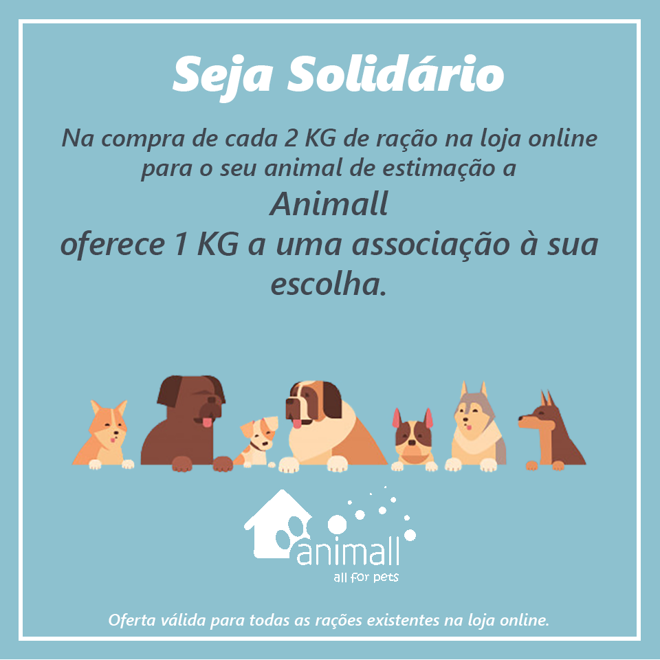 Na compra de cada 2 KG de ração na nossa loja online para o seu animal de estimação a Animall oferece 1 KG a uma associação à sua escolha.