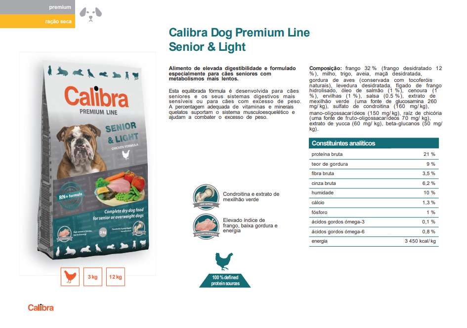 Um alimento nutricionalmente completo para cães idosos e com excesso de peso.