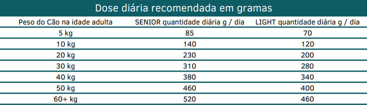 Este é um guia aproximado e deve ser ajustado de acordo com o nível de atividade do seu cão.