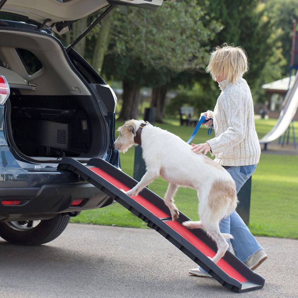 Rampa leve para ajudar cães idosos ou com problemas de mobilidade a entrar e sair do carro.